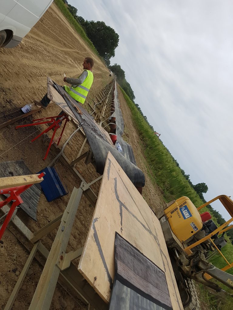 remplacement de bande caoutchouc sur convoyeur sur site.